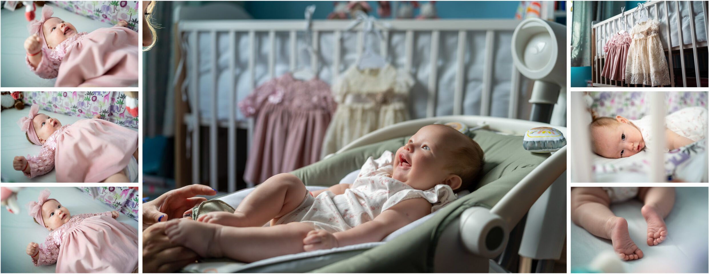 Momente autentice cu bebelușul: îl fotografiem și filmăm în pătuțul său și în alte zone ale camerei, punând accent pe naturalețea și gingășia fiecărui gest.
