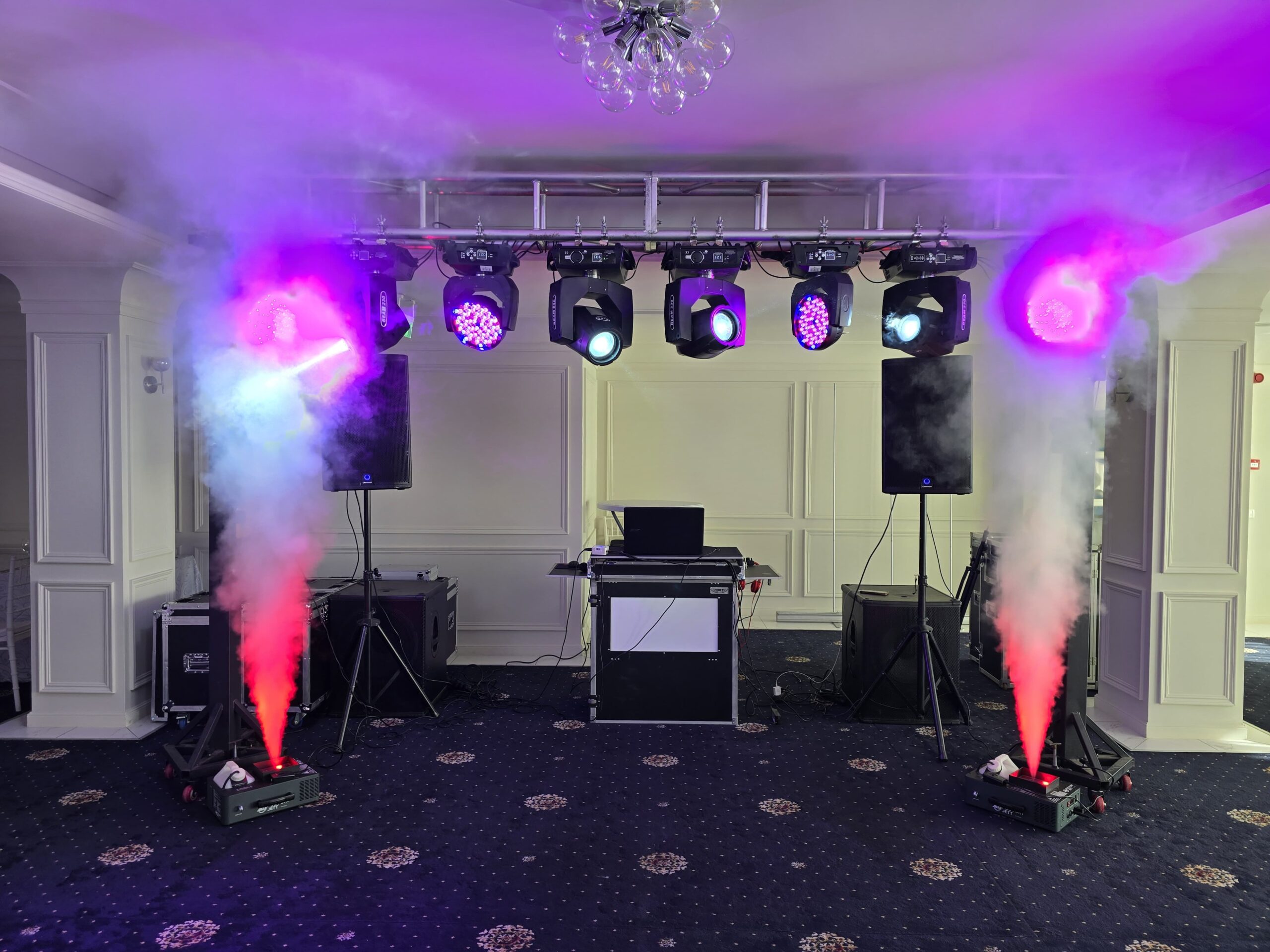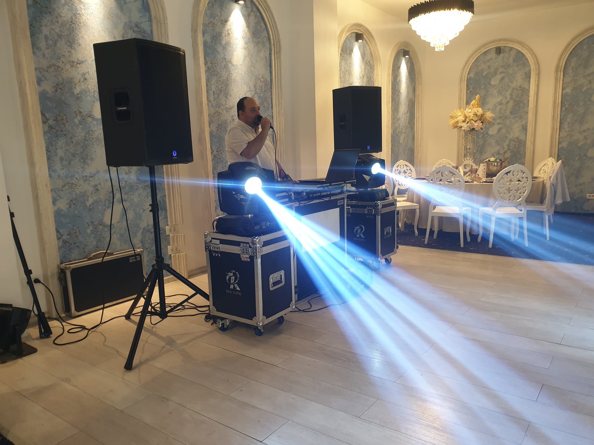- Sonorizare formata 2 boxe- 2500w, 2 bass - 1800w schela lumini 4m: 4 beam 230w r7, 4 wash 188, 2 fum vertical efect Co2, 1 fum densitate mare, control dmx, masa dj